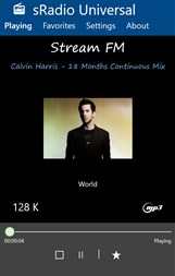 sRadio is a Windows Universal radio streaming application designed to run across your Mobile, Desktop and Xbox One.