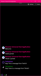 This program is nothing more than a chat unifier to assist streamers who broadcast on multiple platforms in managing and reading their chats without having to switch between windows. Currently, it only connects to Twitch and TikTok chats, but there are plans to include Discord and Instagram chats as well.