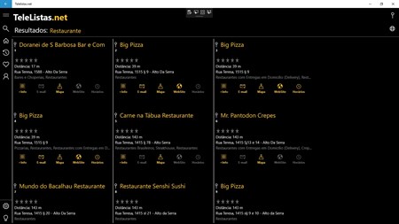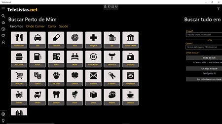 Busque empresas por PALAVRA-CHAVE e/ou NOME no local de sua escolha – com todas as cidades do Brasil; ou faça buscas rápidas usando o PERTO DE MIM em um clique e encontre restaurantes, bares, bancos, caixas automáticos, farmácias, táxi, diversão e cultura, hospitais, entre outros.