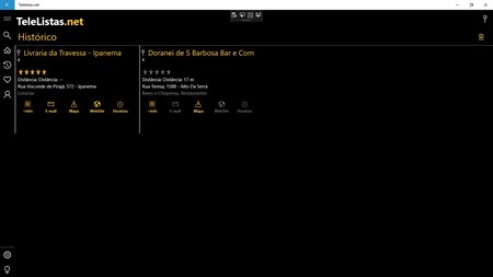 Visualize o HISTÓRICO de suas últimas buscas, acesse os sites das empresas e adicione como contatos à agenda do seu celular.
