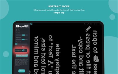 Benefits: - Multi-format: Supports opening most common text files, such as PDF, Word, OpenOffice and TXT. - Multi-language user interface. - Mirror mode. - Portrait mode. - Speed control. - Adjustable text size. - Adjustable margins. - Remote control available: www.teleprompterpad.com/remote-control/ - Allows remote control from most popular pedals: Donner, iRig Blueturn, AirTurn PEDPro and AirTurn Duo BT-200. - Allows remote control from keyboard. - Allows remote control from mouse. - The script and the settings are saved in the memory even after closing the app until pressing the RESET button to return to the default settings. - Open the script from your device or from any cloud service: iCloud, Dropbpx, Google Drive, etc. - Copy and paste the script from any application or document: email, cloud documents, WhatsApp, PDF files, etc. - Edit the script directly on the main screen. Ideal for small last minute changes during your recording session.