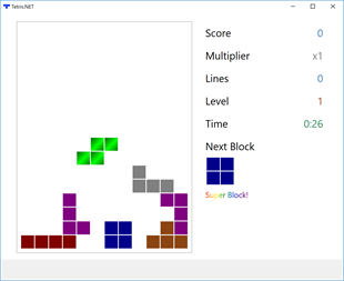 Tetris.NET is a clone of the classic game of TETRIS, written in .NET 4.6.