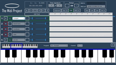 The Midi Project is a midi sequencer. It allow you to record from your midi in device or modify existing midi files. It has a key editor, an integrated keyboard and a midi list editor. It is useful and easy to use.