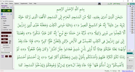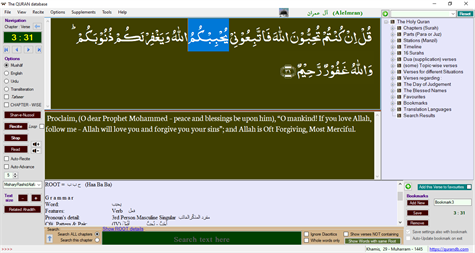 The Quran database is a resource for the study, analysis, reference, recitation, and memorization of the Holy Quran.
