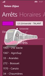 Pour les usagers du réseau "Divia" de la ville de Dijon, l'application (non fournie par Divia sous Windows phone) permet simplement de connaître l'heure de passage des prochains bus (système TOTEM). Vos arrêts favoris sont mémorisés dans le téléphone pour simplifier la saisie du numéro de TOTEM. Ne ratez plus votre bus !