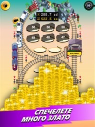 Train Merger се играе много лесно: купете, сглобете и управлявайте вашите влакове, за да спечелите злато и да отключите всички над 60 модела. Ъпгрейдвайте вашите сгради, за да печелите повече от тях и завършете голямото предизвикателство - Да сглобите Златният Експрес!