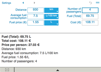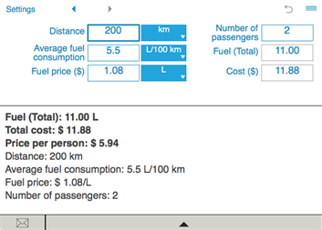 The fuel cost calculator keeps calculation history so you can easily view and compare your recent calculations.