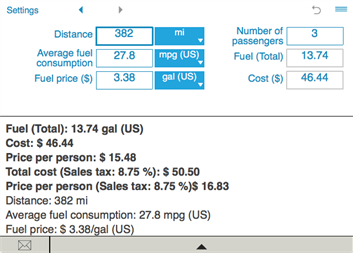 Fuel cost calculator helps you estimate the fuel consumption and fuel cost of a trip.