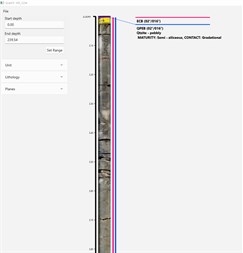 ScanIT allows geologists to photograph, record, interpret and validate their drill core in an intuitive and effective manner. By capturing undistorted images of the core using a smartphone, the geologist can undertake digital geological logging encompassing lithological, structural and geotechnical parameters. This digital core logging platform ensures accurate and consistent recording of geological information. The versatility of the software enables off-site logging and thus improves efficiency and management of the core logging process. As a field-based system, it allows the core trays to be photographed at the drill site or core shed and the data to be immediately transferred, either wirelessly or manually to the geologist for logging and monitoring drill site operations. The system uses an iPhone mounted on a custom designed cradle, which is manually pushed along the Unique Core Products (UCP) Africa core tray to capture the image via an in-house app. ScanIT automatically crops the image, determines the core size, recognises the depths from the Core Depth Markers (CDM) and marks the temporary up-hole and down-hole depths. Once the natural gaps or the forced breaks in the core have been identified and marked by the user, the software determines the Core Recovered (CR) and calculates the core loss or core gain. After the loss or gain has been manually allocated to specific drill breaks, the software automatically meter-marks the core and accurately depth references the image. The depth referenced image can then be used to log the borehole and record the orientation of structures relative to the borehole survey, independent of the final down-hole survey. The survey can be imported at any time during the logging process, and all the previous structural recordings are immediately realigned to provide an accurate real space orientation of the structures. Recording the orientation of planar and linear structural features and lithological contacts that are exposed in the images is accomplished by simply clicking on the trace of the feature three times; the program statistically computes the best fit plane and calculates the Dip and Dip Direction (if the core is orientated) or Alpha Angle (if no core orientation tool was utilized) of the planar structure. The data is plotted on stereographic and 3D orthographic projections. The core is cropped, and a composite spliced image of the core, with all the gaps and depth marks removed, is also produced. The software is extremely accurate, Dip and Dip Direction to an accuracy of 1.5°, with a precision of <3°, and offers several options that can be used to audit and verify the data to ensure cleaner, uncluttered data sets. The program is versatile as it allows the user to import the down-hole survey data, and to create customized, site-specific dictionaries and database (with their unique RGB colours) for the various geological logging characteristics, such as lithologies, structure and stratigraphy.