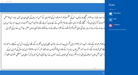 Some important features are • Ability to change font size • SMS in Urdu with single touch • Email in Urdu with single touch • Share status in Urdu with single touch • Save Urdu documents for reuse • Copy Urdu text to clipboard • Complete Urdu UI • Pin Urdu notes to start screen