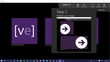 Vector is for Windows and Windows Phone app developers. Use it to automatically create images for tiles, splash screens, and all other images required from your app from one scalable vector graphics (SVG) file. Simply choose an SVG file, place it on your tile with multi-touch or your mouse and export all of the images. Vector also exports all the images for devices with high pixel density screens. Exports up to 42 images from one SVG file!