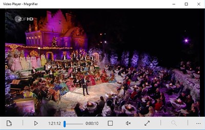 Video Player – Magnifier is a simple video playback app having one distinguished feature - built-in magnifying area working like a magnifier glass. Magnifying area size and position as well as magnification level are easily controllable by user. This feature available all the time while video is either in play or in pause mode. This App can be found useful playing back primarily low and standard definition videos. This App neither improves video quality nor increases video resolution.