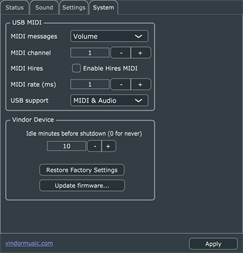 Control application for the Vindor ES1 Electronic Saxophone. Customize sounds and features of the ES1. The Vindor ES1 is an affordable and easy-to-use electronic saxophone.