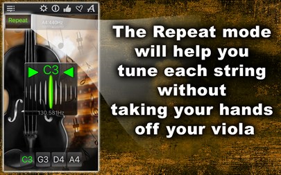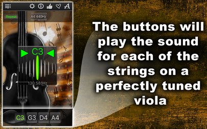 Try 1 day for FREE! Simple and powerful, this viola tuner is both in one! You can listen the sound of each tuning string as well check & fine-tune the strings with the help of the chromatic tuner, placed in the middle of the app window! App-features: * Chromatic tuner with audio-input and microphone support, * Tone generator with authentic viola sound, * Automatic repeating of the playing sounds, * 11 pitches modes: + Baroque, + Scientific, + France1859, + New Philharmonic, + Concert Pitch, + Boston Symphony Orchestra, + New Berliner Philarmoniker, + Moscow Theater, + Old Berliner Philharmoniker, + Old Philharmonic, + Renaissance.