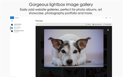 Create stunning responsive websites and web forms in minutes! - No coding required. Just drag and drop web design elements to craft your own unique website. - Add animations, carousels, lightboxes, videos, audios, slideshows, tables, HTML snippets, web forms and more to make your website stand out. - Unlimited creativity. Make as many websites as you want and own all your files.