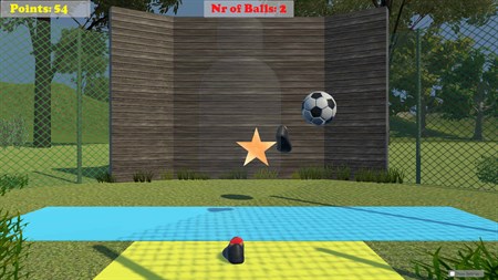 QUICK START Before you start, make sure Kinect is properly installed and you have tested a good spot for playing where the Kinect sensor can "read" you properly, see above under "Technical stuff". If you have two graphic cards on your system, run the game with the better card otherwise it can affect Kinect/game performance. (For example, if you have a nvidia card you can manage this in nvidia control panel, manage 3D settings.) Start the game by pressing the Wall Ball icon. From the Main Menu (start screen), choose one of the three game variants Standard or Easy version or if you would like to sit down and play, choose Seated mode. The ball is somewhat larger and slower in Easy and Seated mode. With the Toggle Show Settings (down at the right corner), you can adjust for your camera's placement above the floor. It is recommended to fine tune this. If the camera height setting are too low, you will feel like your feet are really heavy and won't lift properly. If it's to high, your feet will float in the air. The camera height slider correspond to the Kinect sensor's placement above the floor, however if it is tilted, you may have to adjust the slider more. Stand in front of the Kinect camera, let the camera know you're there by moving slightly. When camera has found you, start kicking. Kick the ball by using your right or left foot. When aiming, remember this is virtual reality so aim in a real world scale, not just in a small tv screen scale, that is, play like you were in the park yourself facing a large wall about 4 meters in front of you. If the ball touches the area right behind you (an area as wide as the yellow area you're standing on) you will lose one ball. To prevent the ball from hitting this area, you can stop the ball with your "body", shown as a silhouette, or just use your feet. You can slide from side to side inside the yellow area and crunch (you can't really move forward or backward, only as far as your legs can reach).