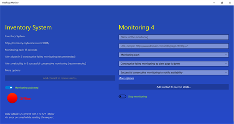WebPage Monitor monitors the availability of your web pages, sites and services, detects problems early and allows you to anticipate denials of service. It can monitor any web page that is on the internet or on your local network.