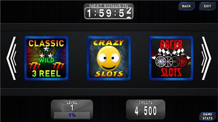 A collection of slots and card games normally found in a casino. No real cash needed to play. Have fun.