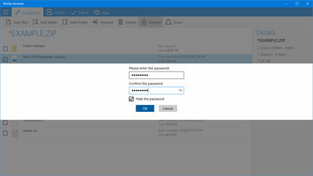 With a free 20-day trial and an annual subscription for just $7.99 USD, get the full power of WinZip on any Windows 10 PC, tablet or phone with WinZip Universal. Along with more power, more sharing options and more ease of use than ever, WinZip Universal has the muscle you need to safely handle large files on the go. Open 26 compressed file formats, including .zip, 7z, RAR, .zipx and many more, and save to .zip or .zipx file formats. Zip files and folders for fast, easy sharing. Connect to your clouds-zip, unzip and share with seamless support for world-leading Dropbox, Google Drive, Box, OneDrive and European CloudMe cloud storage services-without installing other apps. Protect before you share with passwords and military-grade encryption. Squeeze files even more, including JPGs, with the exclusive .zipx compression format. With the strength of the world's #1 Zip utility at your fingertips, and deep integration with your social accounts and cloud drives, WinZip Universal makes it easy to securely share files from anywhere. WinZip Universal makes it simple to get oversized files or entire folders to friends, contacts and followers through email, as well as Facebook, LinkedIn and Twitter, thanks to its direct connection to ZipShare file sharing services. Whether you are emailing, sharing online or storing files on your system, WinZip helps keep them safe and makes them easier to share. Out to lunch, but your boss wants that report ASAP? With a modern touch-friendly design, WinZip Universal makes sending large files on Windows 10 PCs, tablets, or phones effortless. Much more than a simple 'unzip' app, WinZip Universal delivers the same zip technology as the desktop version of WinZip, but as a Windows Universal app that you can use on any Windows 10 device. With over a billion downloads to date, WinZip Universal is the solution you can count on to protect, store and share your important files.
