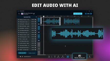 Please note that all functionalities are not able to use without fully applied for subscription. Some features like AI noise cleaning, equalizer for 10 band, limiter, reverb, echo and multi-format for saving (WAV, M4A, WMA, FLAC) are available only with subscription. Some features like two multitrack tracks, equalizer for 3 band. Popular editor functions: Undo, Redo, Split, Fade in/out, saving in MP3 format, adding a cover to a track, five free AI track editing attempts, recording audio from an external microphone, managing active multitrack tracks are available without subscription.
