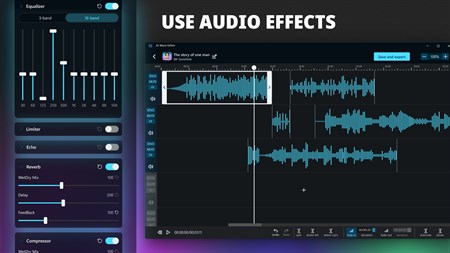 Some of the main features include: - AI noise removal - Multitrack editing - Supported formats: MP3, AAC, WAV, M4A, WMA, OGG, FLAC, M4R, MIDI - Audio fragment manipulation, repeat, undo, cut, crop, copy, paste, remove - Fade in, fade out, crossfade, silence - Sound level and 3-band/10-band equalizer adjustment - Effects: compressor, flanger, delay, pitch, chorus, distortion, reverb, pan/expand