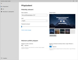 Přizpůsobení • Pojmenování adaptéru • Změna jazyku adaptéru • Přizpůsobení tapety displeje (nové) • Přizpůsobení zobrazení • Možnosti rychlého připojení (nové)*