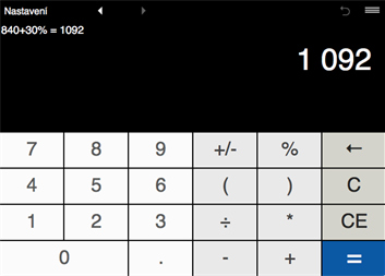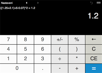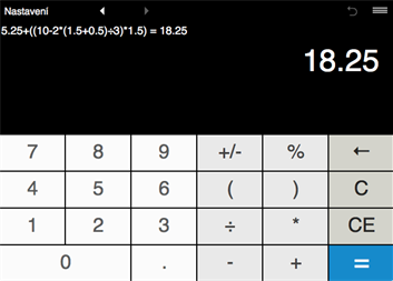 Kalkulačka umožňuje vypočítat výrazy s libovolným počtem závorek.