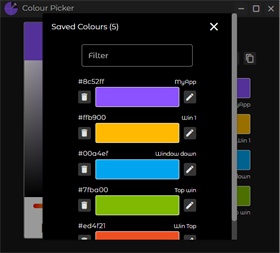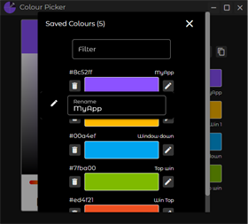 Pick colours off the screen and name them accordingly in the saved list. It can save up to 1200 colours with a search function to quickly find any saved colour.