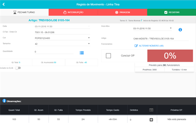 -Registo de produção via Tablet por máquina e funcionário -Registo de Paragens e defeitos -Análise de Produtividade por Funcionário, Máquina, Turno e Secção