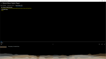 Listen 2946 Dance Music Radio stations all around the world. Search stations and/or add to Favorites List. Customize under Settings Audio Spectrum Analyzer. You could choose random colors or custom colors for displaying Audio Spectrum. You could also choose background picture for Audio Spectrum. Choose Spectrum On/Off or Spectrum size Normal Big or Small.