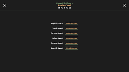6 slovníků cizích jazyků: Čeština – Angličtina, Francouzština, Italština, Němčina, Ruština, Španělština.