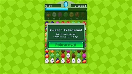Návod: Normální režim - do dalšího stupně pokračujete tehdy, když sestavíte požadovaný počet vejce dle vyobrazení v horní části obrazovky.