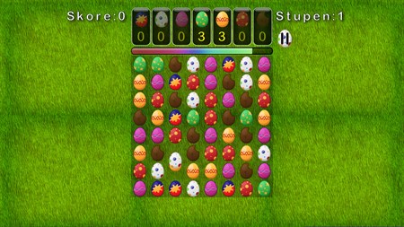 "Easter Jewels" je návyková skládací hra o sestavení tří stejných prvků!