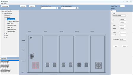 Design model buildings in any scale. You can export your building as SVG and use it with a laser cutter, or just print them out to make mock-ups, or use your favourite SVG editor to add colors before printing. You can also use it along with a laser cutter to create loose windows and doors for other scratch-building projects.