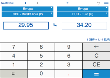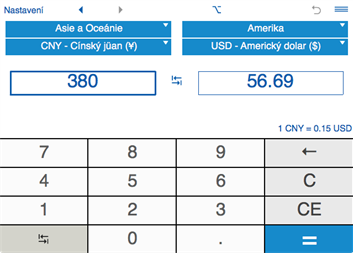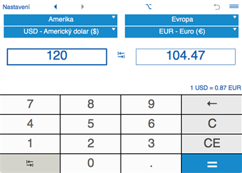 Tato kalkulačka bude velmi užitečná například při cestování, kdy konečně nebudete muset odhadovat kolik to vlastně je korun/eur/dolarů atd. Či při jiných zahraničních platbách. Nemusíte již provádět složité výpočty, stačí pouze zavést danou hodnotu, vybrat měnu a zmáčknout tlačítko "=".