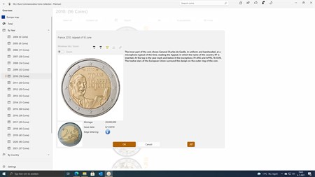 My 2 Euro Commemorative Coins Collection App is the one and only Windows App to manage your 2 euro commemorative coin collection. The app is without ads. Developed by a collector for collectors!