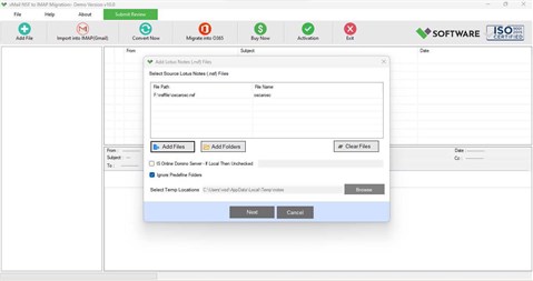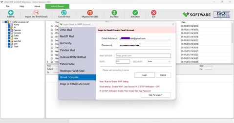 vMail NSF to IMAP Migration Tool is convert & import IBM Lotus Notes (HCL Notes) NSF Mails to IMAP (Yahoo Mail, Gmail/Gsuite, Zoho Mail, Outlook.com and Yandex) email account directly including Lotus Notes Emails Items and vMail NSF to IMAP Migration tool supported lotus notes or HCL Notes Versions: -12, 11, 10.0.1, 9.0.1, 9.0, 8.5, 8.0.2 etc. *.NSF Files. – Basic Requirement of vMail NSF to Gmail Migration Software 1) IBM Notes Client must be installed on your Local System 2) NSF Database should be in healthy state (not corrupted). Limitation: Demo version enables you to preview and migrate 30 items into O365 Mailbox User Account