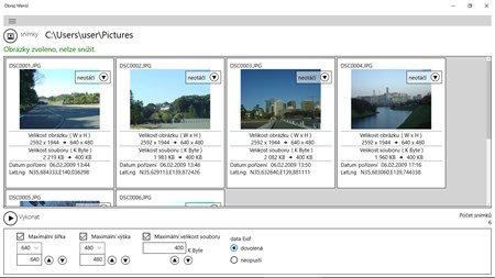 "Obraz Menší" snižuje dva nebo více obrázků, jako je fotografie, kolektivně. Můžete určit velikost obrázku a souboru na snižování. Volba že dovolenou, nebo ne Nechat natáčení fotografovat informace (Exif), včetně umístění je možné. Kromě toho rotační Označení jednotlivého snímku je možné.