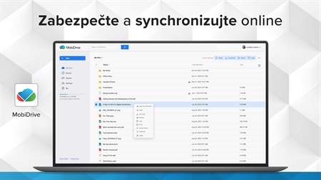 • Integrované cloudové úložiště zajišťuje snadný přístup k souborům – získejte zdarma 5 GB v cloudu MobiDrive nebo připojte své stávající účty služeb Disk Google, OneDrive, Box či Dropbox. • Praktická integrace úložiště MobiDrive do počítače umožňuje hladkou obousměrnou synchronizaci místních souborů s cloudem. • Na platformě nezávislé prostředí propojuje osobní počítač se systémem Windows se zařízeními se systémy Android a iOS. • Sada je kompatibilní s oblíbenými formáty souborů, například Microsoft, OpenOffice, Apple iWork a mnoha dalšími. • Aplikace pro počítač mají dobře známé a oblíbené uživatelské rozhraní.