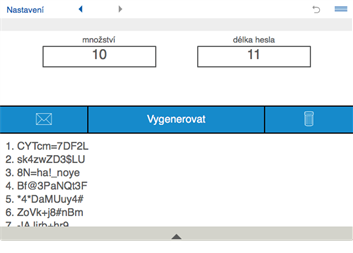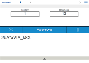 Pro vygenerování hesla nastavte délku hesla a kombinaci znaků a stiskněte tlačítko "Vygenerovat".
