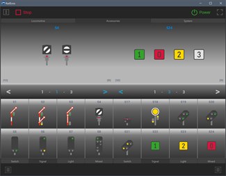 RailEvos is an application for controlling a model railroad using digital command stations. With this application, you can control the model of the railway from the screen of the device on Windows 10 in the same way as from the screen of the command station. The application has two independent controllers for locomotive control and two independent control panels for accessory modules. Also, the program allows loading and displaying custom icons of locomotives from the command stations ESU ECoS 50200, ESU ECoS 50210. A detailed description of the application's functions is available below. The trial period is available before you buy the application in full version mode. Demo mode is available for testing the application without connecting to the command station.