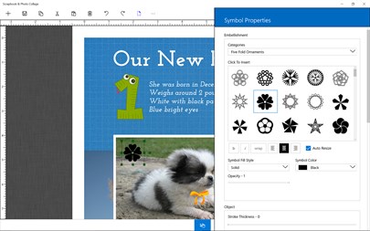 Scrapbook & Photo Collage is a WYSIWYG scrapbook designer and photo collage printing app. It allows you to easily layout your photos and add decorative embellishments for printing. An image can also be generated for sharing on your social media.
