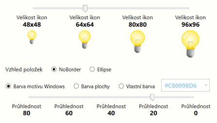 Všechny programy, složky a weby setříděné do sloupců s nastavitelnou důležitostí a možností zobrazit, jen co potřebujete.