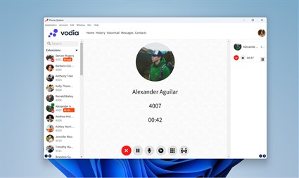 The Microsoft Windows client is a standalone version of the user front end. It runs the web front end as an application, so that it can be automatically started after logging in and continues running while the user is logged in. Because it is based on the web front end, it comes with all the features of the front end. This includes making and receiving phone calls, putting calls on hold and transferring calls. This makes it ideal as an application for front desk and call center agents that have to deal with a lot of calls during the day. Especially when using a good headset, voice quality can be as good or even better compared to a desktop phone. The Windows app is the best choice for texting. Vodia Phone to Vodia Phone calls are free. Operator data charges may apply. We recommend using an unlimited data plan or WiFi connection. Commercial features of this app require a paid subscription or a trial 60-day subscription. If you’re not sure about your company’s subscription or the services you have access to, visit https://vodia.com to learn more or contact your IT department.