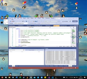 New features in WinPenguins Version 1.0: - WinPenguins now works on Windows 10 and Windows 11! - Added new Large penguins (Bitmaps from Xpenguins). Toggle between Small and Large penguins in Settings. - Added new Super Penguin (Bitmap from Xpenguins). - Penguins can now walk upside down and skateboard upside down! (New sprites) - Penguins can now climb down and skateboard down. (New sprites) - Created new bitmap sprites for Large Santa Walker penguin and Large Santa Climber penguin. - Added new Exit animation for Walker penguins (Bitmap from Xpenguins). - Created new bitmap masks for Skateboarder, Skateboarder Climber, Splat, and Exit sprites so they now work with Alpha blending. - Penguins now fall in through the top of the screen rather than materializing out of thin air! - Tumbling penguins can now transform into Skateboarder penguins on impact. - Balloons are now only popped for Ballooner penguins when mouse is over balloons area of sprite. - Smoother transitions between different penguin types. - Added DPI scaling support. - Fixed a bug where sometimes the splat animation could be offset to the left or right instead of being central. - Fixed a bug where splat penguins would transform back to life on app shutdown. - Fixed a bug where penguins would sometimes splat when transitioning from a Climber to a Walker. - Fixed a bug where Tumbling penguins would only turn left on landing. - Fixed a bug where Reading penguins would read in mid-air in situations where there was no longer a window to sit on. - Fixed a bug where penguins could transform into Santa penguins even with Santa penguins disabled. - Fixed a bug where Climber and Skateboard Climber penguins would always tumble when hitting a top right corner. - Fixed a bug where a falling penguin would tumble instead of climbing when hitting side of window. - Fixed a bug where the app would sometimes not shutdown if a penguin was in the exploding state. - Fixed a bug with balloons not popping on mouse over. - Fixed a bug where screenshot would not be saved if the BMP bitmap file format was chosen. - Fixed an issue with sound clipping when multiple sounds are played at once. - Instead of drawing on the desktop window, penguins are now drawn on a new transparent overlay window. - Improved performance. - Fixed lots of resource and memory leaks.