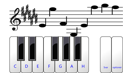 Lær at syne læse noder i G og F-nøgle. Musik noter omfatter over og under linjen systemet. Dækker 6 oktaver. Gælder for ethvert instrument. Musik noter genereres tilfældigt og ikke er begrænset til et gentaget sæt. Skifte mellem nøgler for endnu mere sjov. Svarnøgle til begyndere. Begyndere sætte tempoet ved at begrænse oktav afsnit for at lære. Dur og Mol Skala (Sharps og flats). Hastigheden afhænger af, hvor hurtigt de musik noter er identificeret. Medtag test score og statistikker. Piano lyd kan være dæmpet. Great for telefoner. Perfekt til tablets. Alternative notationer: C D E F G A B C D E F G A H Do Ré Mi Fa Sol La Si Do Re Mi Fa Sol La Si ハ ニ ホ ヘ ト イ ロ Ni Pa Vu Ga Di Ke Zo Sa Re Ga Ma Pa Dha Ni