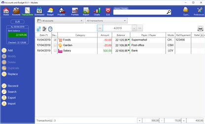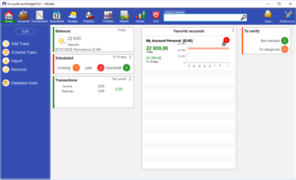 Accounts and Budget enables you to manage your personal finances quickly and easily. It supports all the features required for home.