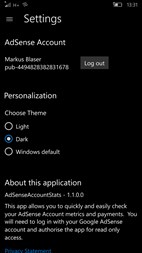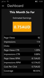This app is for all Windows device users with Google AdSense accounts. Quickly and easily check your AdSense performance stats, such as Earnings, Page Views, Impressions, Clicks, Click Through Rates and Coverage.
