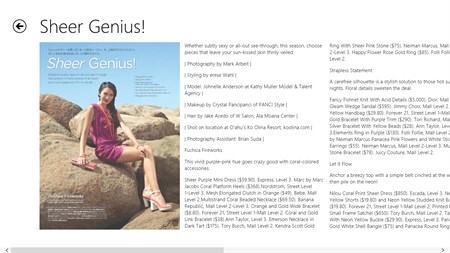 Ala Moana magazine app’s editorial content speaks directly to both local and international audiences, with entertaining and engaging articles about the latest fashion and island trends. Featuring insights from designers and style influencers, Ala Moana magazine is written to engage a visitor on the move as well as a resident seeking the latest and hottest when it comes to fashion, beauty, jewelry and more. With interactive page flipping, a zoom feature, bookmarking, searching and sharing your favorite articles allow an enhanced magazine experience right anywhere and anytime you choose to read.