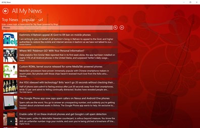 Simple easy to use news reader. Select from popular RSS feeds, search top news articles (powered by Bing), or enter the URL to your favorite feeds and stay up-to-date with the news and events you care about.